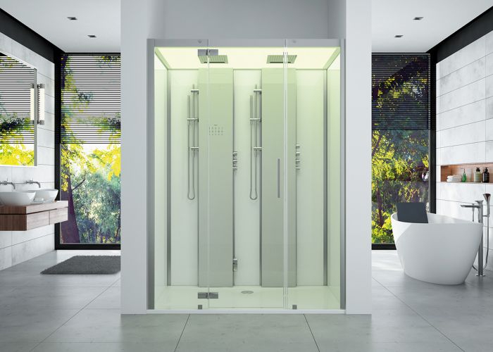 HOESCH SensePerience Kabina parowa prostokątna lewa do montażu we wnęce z brodzikiem z odlewu mineralnego 1800x1000 biała 535381xA.010550