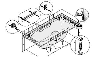 HOESCH Zestaw montażowy do wanny - para nóżek do wanny, kotwy do wanny, profil łączący do ściany, listwa wannowa 6911